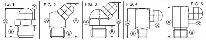| SAE Number | Thread | Type | Fig | A (mm) | B (mm) | X (mm) | |